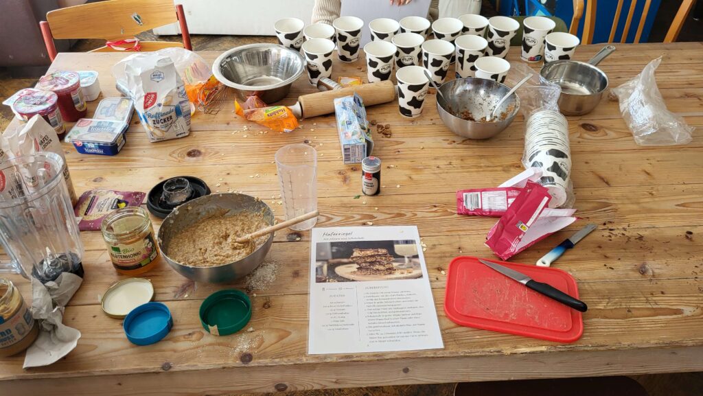 Im Workshop konnten die Jugendlichen Wissen rund um das Thema Ernährung sammeln und nebenbei ihre Küchenfertigkeiten und sensorischen Fähigkeiten verbessern. Auch das gemeinsame Essen und die dabei entstehenden Tischgespräche sind wichtiger Bestandteil des Workshops. Beim Landwirtschafts- und Milchquiz stellen die Jugendlichen ihr Wissen über Ernährung und Landwirtschaft unter Beweis.