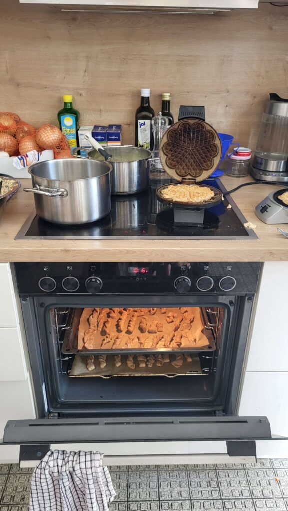 Am Freitag folgte die Abschlusspräsentation der Akademie der Spiele in den Herrenhäuser Gärten. Auch der LVN-Workshop präsentierte hier seine Ergebnisse und bot Pfannenbrot mit Dips, Käsestangen und Haferriegel zur Verkostung an.