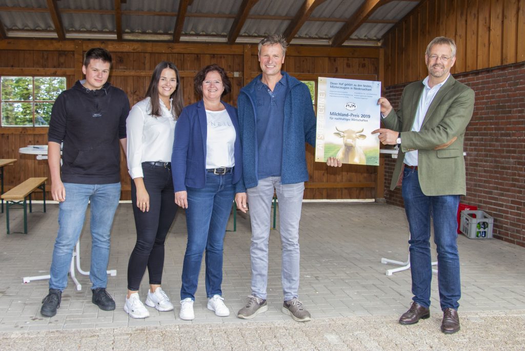 Familie Gloystein aus Elsfleth ist unter den Top zehn der besten Milcherzeuger Niedersachsens. Für herausragendes nachhaltiges Wirtschaften auf ihrem Milchbauernhof haben die Gloysteins jetzt ihr Hofschild als Blickfang und Auszeichnung für ihre tollen Leistungen bekommen.