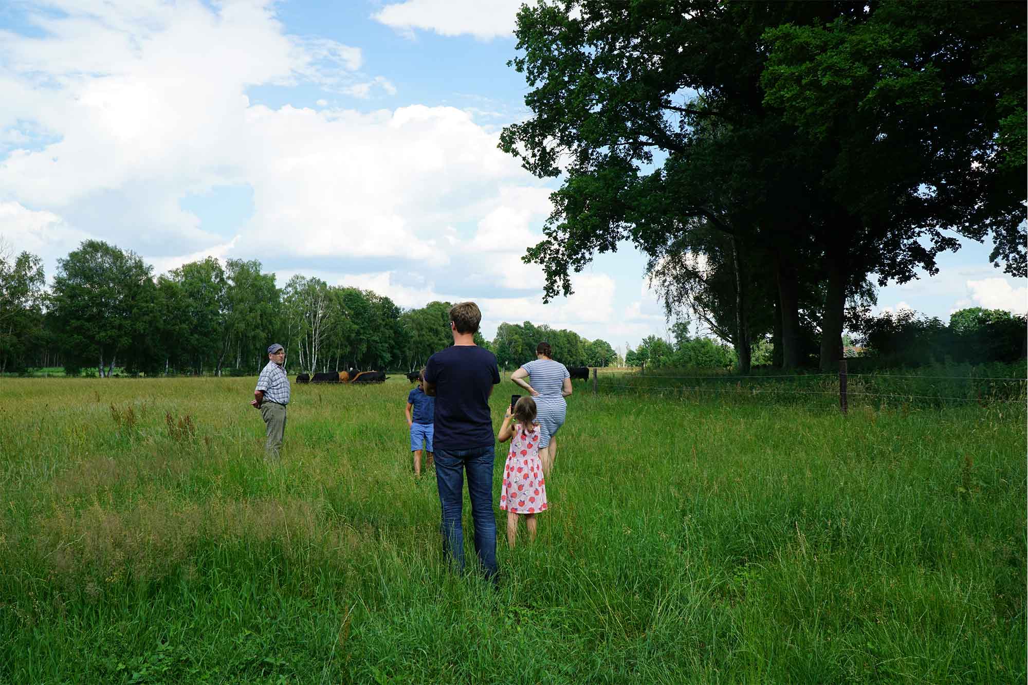 Auftakt bildete der Hofbesuch bei Birgit und Helmut Evers im Landkreis Gifhorn. Für Anika und ihre Familie ging es bei traumhaftem Sommerwetter auf den Milchhof Evers, ein Familienbetrieb mit langer Tradition mitten in der Ortschaft. Während der Besichtigung von Kälber- und Kuhstall wurde Helmut von Groß und Klein mit zahlreichen Fragen zum Hofalltag und dem Leben der Kühe gelöchert. Ruhig und geduldig beantwortete der Landwirt und KuhTuber alle Fragen und zeigte der Familie seine täglichen Aufgaben – vom Füttern übers Ausmisten bis hin zum Melken. Bei Letzterem durften dann auch die Kinder mitanpacken: Ohne Scheu und mit ein wenig Übung zeigten die beiden ihr Talent als „Profimelker“. Zum Abschluss des Hofbesuches durfte Familie Barton noch die Angus-Rinder auf der benachbarten Weide bestaunen.