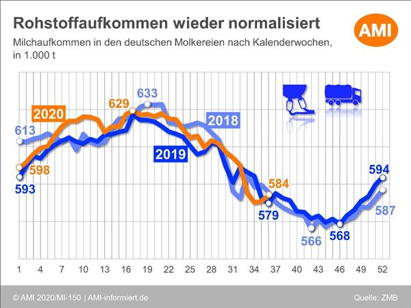 Anfang September ist das Milchaufkommen in Deutschland weiter leicht gestiegen. Bereits in der Vorwoche hatte eine Stabilisierung der Anlieferungsmengen eingesetzt, nachdem es zuvor zu einem hitzebedingt stärkeren Rückgang gekommen war.