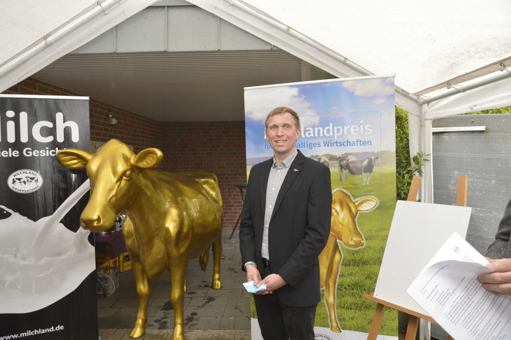 Jan Heusmann, Vorsitzender der Landesvereinigung der Milchwirtschaft Niedersachsen e.V. (LVN), unterstrich den hohen Anspruch des Milchlandpreises an die Kandidaten, die eine fachliche Antwort auf die öffentliche Diskussion um die Milchviehhaltung sei: „In den letzten 20 Jahren konnten wir als LVN gemeinsam mit über 1.000 Wettbewerbs-Teilnehmern zeigen, dass niedersächsische Milchbauernhöfe ihre Verantwortung ernst nehmen und sich auf den Weg machen, nachhaltig zu wirtschaften“, so Heusmann. „Es ist in all den Jahren immer wieder beachtlich, welche Motivation die Auszeichnung im Wettbewerb auf den Höfen hinterlässt und welche Entwicklungen im Bereich Tierwohl und Umweltschutz auf den Betrieben zu beobachten sind. Auch kleine Veränderungen zählen auf dem Weg in eine nachhaltigere Zukunft der Milchwirtschaft.“