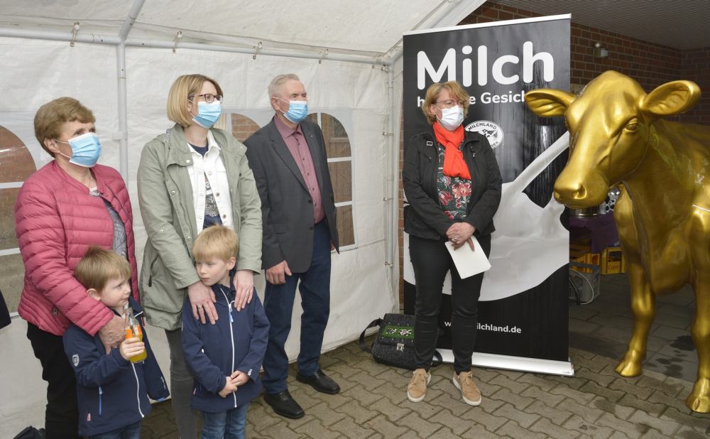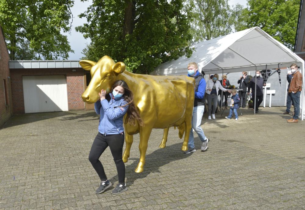 Im kleinen und Corona-konformen Rahmen hat die LVN am 25. Mai 2021 auf dem Hof der Familie Börger in Wietmarschen gemeinsam mit der Niedersächsischen Landwirtschaftsministerin Barbara Otte-Kinast eine lebensgroße goldene Kuh-Statue mit Namen „Olga“ offiziell aufgestellt.