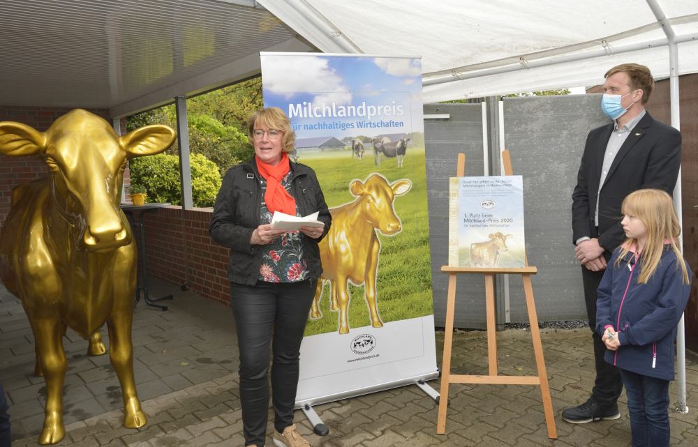 Der Milchviehbetrieb hatte es im Dezember 2020 an die Spitze der 8.800 Milcherzeuger in Niedersachsen geschafft. Familie Börger darf sich mit ihrem Betrieb seitdem „Bester Milcherzeuger Niedersachsens 2020“ nennen. Jessica (35) und Hartmut Börger (40) erhielten im Rahmen einer digitalen Preisverleihung die „Goldene Olga 2020“ und einen Geldpreis in Höhe von 3.500 Euro.
