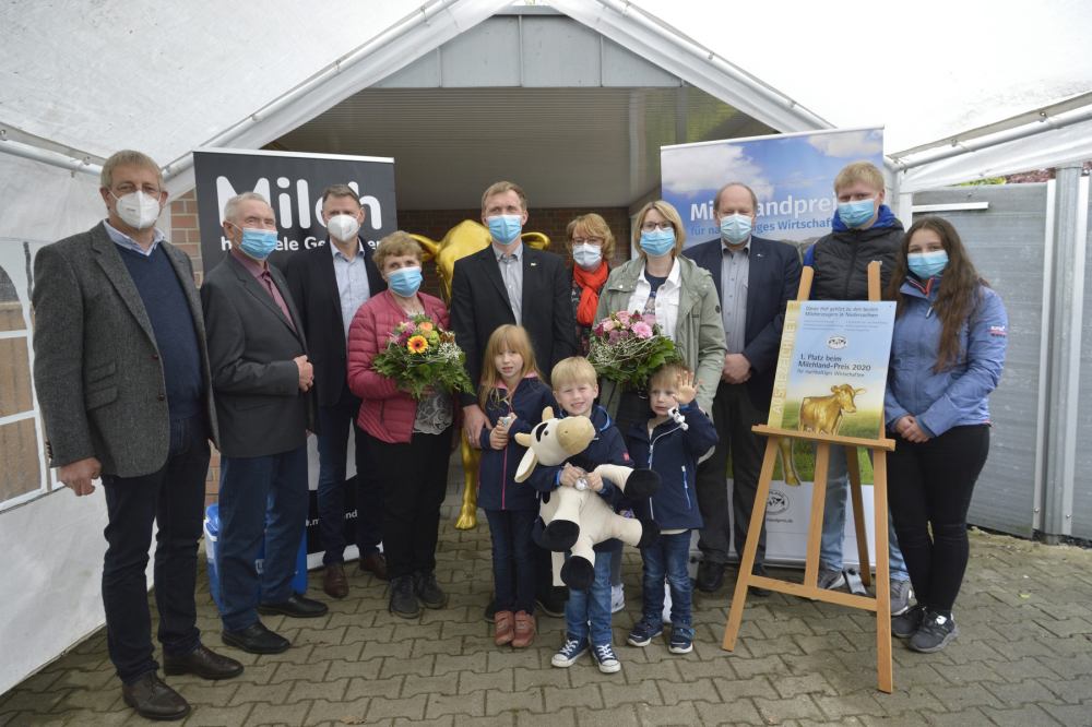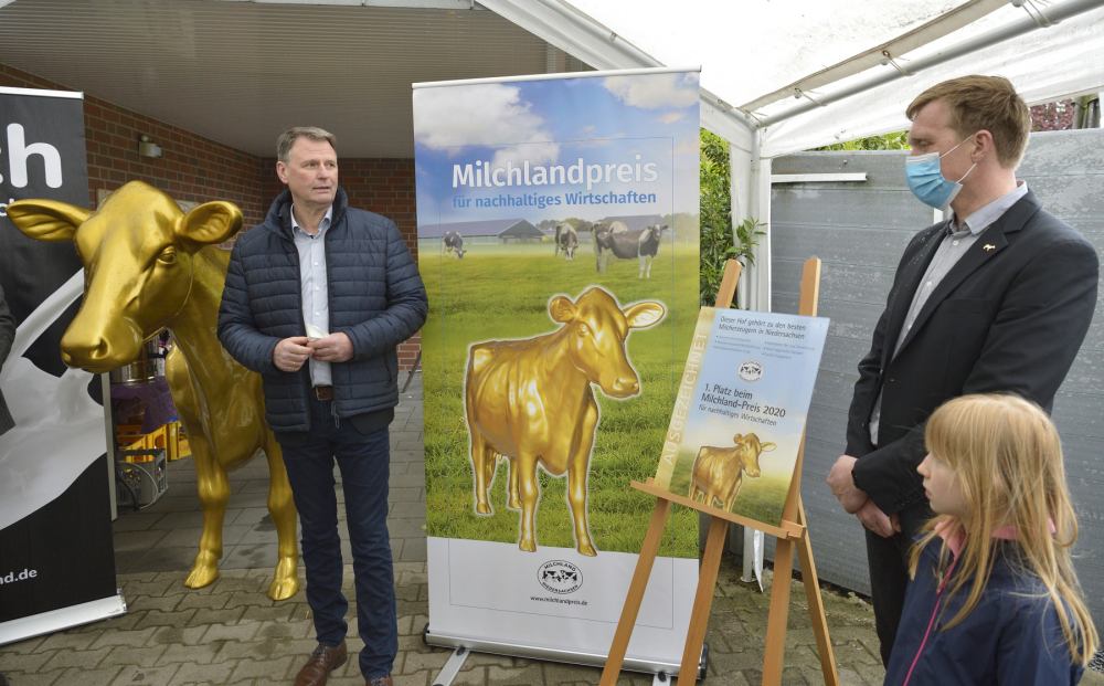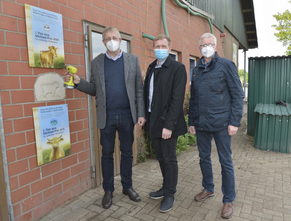 Im Rahmen der Feierstunde auf dem Hof stellte Betriebsleiter Hartmut Börger den Gästen seinen Betrieb vor. Die Vorsitzenden der Landesvereinigung der Milchwirtschaft Niedersachsen e.V., Jan Heusmann und Herbert Heyen, gratulierten der Familie und erläuterten dabei die für den Sieg ausschlaggebenden Einschätzungen der Jury. Weitere Glückwünsche und Grußworte kamen von Landwirtschaftsministerin Barbara Otte-Kinast und von Heinz Korte, Aufsichtsratsvorsitzender von der DMK Deutsches Milchkontor eG.