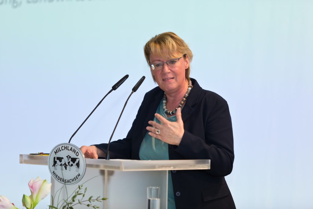 Klare Worte richtete auch die Landwirtschaftsministerin Barbara Otte-Kinast an die Versammlung: „Die hiesige Milchwirtschaft ist bedeutend für Niedersachsen, sie erzeugt qualitativ hochwertige und sichere Produkte. Klar ist aber auch: Die Landwirtschaft steht vor Herausforderungen, die wir angehen müssen. Zusammen mit den Landwirten! Es muss klar definiert werden, welche Landwirtschaft gewollt und in der Gesellschaft anerkannt ist. Und wer einen Auftrag erhält, muss auch entlohnt werden.“