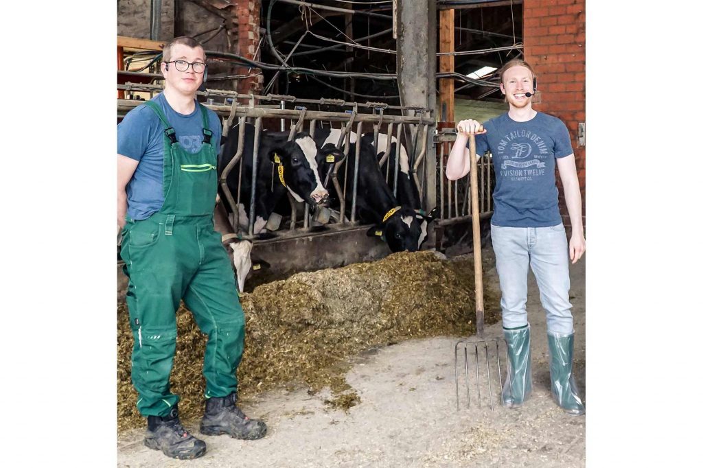 Landwirt David hat ganz schön was um die Ohren. Und dabei ist er erst Ende 20. Er muss sich jeden Tag um 100 Milchkühe und die Nachzucht kümmern. Auf dem Feld wird gerade Kuhfutter geerntet. Die Biogasanlage will gefüttert werden. Die neuen Melkroboter müssen eingewöhnt werden … was für ein Stress! Zumindest wäre unser podcastendes Stadtgewächs Timo von StadtLandKuh ziemlich gestresst.