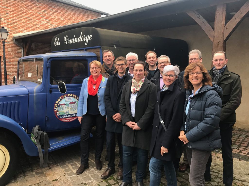 In Livarot wurde die Ministerin von der Regionsvizepräsidentin Clotilde Eudier empfangen. „Wir freuen uns, dass unsere beiden Regionen wieder zusammenwachsen“, freute sich Eudier. Gerade im Hinblick auf die Herausforderungen der Gemeinsamen Agrarpolitik (GAP) sei der direkte Austausch wichtig: „Wir müssen uns im Interesse unserer Landwirte gemeinsam den Rücken stärken.“ Ministerin Barbara Otte-Kinast regte einen regelmäßigen Austausch auf Fachebene an, um mit einer Stimme in Brüssel zu sprechen. „Unsere Herausforderungen sind ähnlich und gemeinsam hat man eine stärkere Verhandlungsposition, um Geld für ländliche Räume zu sichern.“ Zur Delegation gehören mit Katrin Carl und Johannes Blanke zwei Vertreter des Jungbeirates der Landesvereinigung Milch außerdem Jan-Henrik Schöne für den Junglandwirteausschuss des Landvolks, Ingo Bergmann als Gewinner des Milchlandpreises „Goldene Olga“ und Kristine Kindler, Geschäftsführerin der Landesvereinigung der Milchwirtschaft Niedersachsen e.V. „Die Jugend sollte sich europäisch vernetzen, damit wir ein starkes Europa nach vorne bringen“, lautet der Wunsch der Ministerin. In der gläsernen Käserei-Produktion Graindorge, Heimat der Spezialität Livarot, ging es um Wertschöpfung über geschützte Herkunftskennzeichnung. Die Käserei beinhaltet auch ein Schulungszentrum für gezielte Öffentlichkeitsarbeit.
