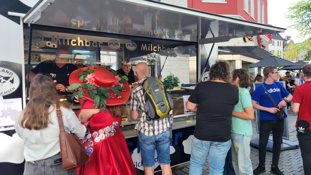 Ein echter Publikumsmagnet war die schwarz-bunte Milchbar, an der sich Besucherinnen und Besucher mit kühlen Milchgetränken stärken konnten. Im direkten Gespräch mit den „Bauern als Botschaftern“ gab es viele Gelegenheiten, über Tierwohl, Klimaschutz und Innovation in der Milchproduktion ins Gespräch zu kommen.